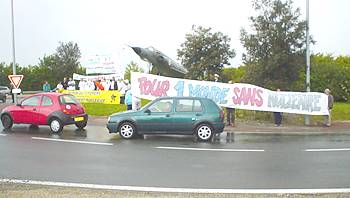 Vanuit Blayais reden we naar Saintes. Hier was een korte spandoekactie bij een bij het militaire vliegveld geplaatste Mirage (Frans gevechtsvliegtuig).