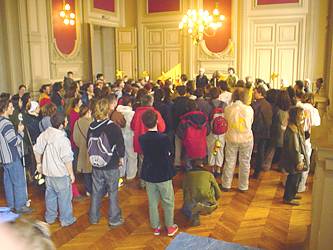 Vanuit Civaux ging het later naar het nabijgelegen Poitiers, voor een manifestatie en een demonstratie door de stad naar het gemeentehuis. Aldaar waren de deelnemers aan de Tour en de aanwezige lokale demonstranten uitgenodigd voor een receptie bij de loco-burgemeester. Ook hier is er een rood-groene coalitie van Parti Socialiste en les Verts. De uitnodiging was opnieuw afkomstig van les Verts en van de PS hebben we niemand gezien. Hoewel de Groenen in Frankrijk consequent tegen kernenergie zijn, kregen de lokale bestuurders wel kritische vragen over hun samenwerking met de PS, tijdens de presentatie op het stadhuis.