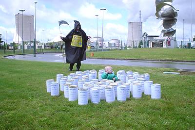 Ook waren er in het verleden terreinbezettingen en is een van de koeltorens tweemaal door activisten beklommen om spandoeken uit te hangen. De laatste jaren is door gebrek aan resultaten de teleurstelling toegenomen en het verzet verminderd. Een kleine groep zet de strijd echter nog steeds voort en volgt de centrale op de voet, o.a. door het doen van eigen metingen naar radioactieve vervuiling. Een van de doelen van de Tour is ook het steunen en hopelijk versterken van plaatselijke groepen. Daarover was de plaatselijke groep positief en ook over de opkomst bij deze demonstratie voor de poort. Het gebruikelijke programma van sprekers, muziek, straattheater vanuit de Tour. Een heel sterk beeld werd door de plaatselijke groep neergezet door een baby te laten rondkruipen binnen een cirkel van 58 blikken kernafval met daarop de namen van de 58 franse kerncentrales (zolang het de baby beviel natuurlijk, met pa in de buurt) De 58 blikken werden even later door een aantal peuters omver gegooid en de baby zodoende "bevrijdt".