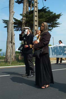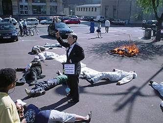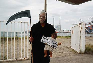 Bij Penly was een korte theatrale demonstratie, waarbij drie "Chirac´s" het spreekwoord horen, zien en zwijgen uitbeelden, de dood rondwaarde en "gevliegerd" werd met het grote spandoek.