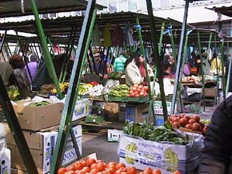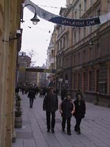 After having bought some appples on the market, the same market were a granate expoded which became the trigger for western militairy action in BiH, we walk to Ferhadija. That is the shoppingstreet in Sarajevo where daily thousents of people stroll up and down, meet each other, to talk and joke together and so on. From the market to Ferhadija is only 200 meters but you can see several reconstructionprojects going on. Last year you could even see streets that were completely covered with constructions for worked and no normal house could be seen because of that. Fehardija is an event. Specially at summertime everybody is coming there to walk and to show oneself. A friend of ours lives on Ferhadija and at 12 in the night is still could be extremely noisy because of all the people having a good time together.