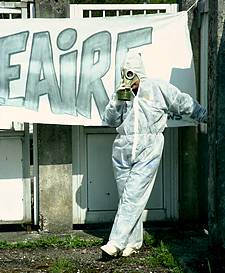 Om het gebrek aan investering in duurzame energie door de franse overheid te illustreren werd een slapende "president Chirac" neergezet met een op 5 over 12 staande atoomwekker.
