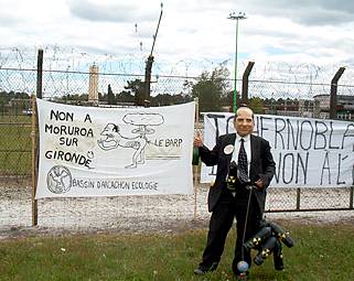 Vanuit de omgeving van Agen ging de karavaan naar het laser Megajoule-project in le Barp. Dit is de plek waar het Franse militaire apparaat met computersimulaties werkt aan de verfijning van hun kernwapenarsenaal en het onderzoek naar Franse mini-nukes. Nadat steeds meer landen atoomproeven onacceptabel begonnen te vinden en binnen de VN de steun voor het Test Ban Treaty toenam deed Frankrijk nog een laatste serie testen in 85/86 op Muroroa.