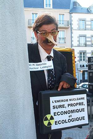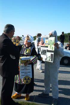 Wel was er ook ditmaal een PR functionaris aanwezig om de demonstranten met mooie praatjes te lijmen. Dit was aan de demonstranten niet besteed en geconfronteerd met foto´s van Tsjernobylslachtoffers gaf de PR meneer ook al snel op. Ondertussen liep "boerin Balkenende" in klederdracht en op klompen rond, uitkramend dat door de beslissing om de kerncentrale in Borssele langer open te houden Nederland zijn bijdrage blijft leveren aan de werkgelegenheid van deze opwerkingsfabriek en dat het met die vervuiling best meeviel. De door "boerin Balkenende" tentoongespreide vriendschappelijkheid richting PR functionaris, maakte dat deze zich nog ongemakkelijker ging voelen en zich verder voornamelijk met de aanwezige gendarmerie onderhield.