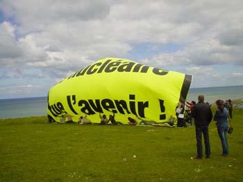 Het noorden van Normandie is weer zo´n streek waar kernenergie een dominerende factor in de gemeenschap vormt. Een groot deel van de inwoners is direct of indirect afhankelijk van de inkomsten uit de atoomenergie en de anti-kernenergiebeweging is er zeer onpopulair. Plaatselijke activisten waarschuwden zelfs voor mogelijke agressie vanuit de bevolking de komende dagen. De dag werd gestart met een bezoek aan een windmolenpark in aanbouw. Tekenend voor de macht van de kernenergielobby (EDF, Cogema e.a.) is dat het aanleggen van dit windmolenpark jarenlang getraineerd is, zo vertelde de lokale activisten.