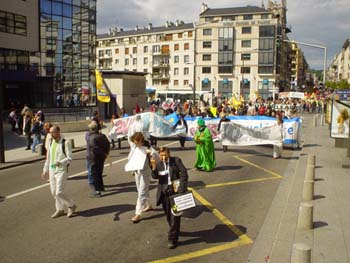 Typisch Frans was de demo verder achteraan; opgedeeld in blokken van verschillende organisaties en partijen o.a. Sortir du nucléaire, Confédération Paysanne, Greenpeace, Amis de la Terre, de anarchistische federatie, LCR (een progressieve communnistische partij; over het algemeen zijn de communisten in Frankrijk, vanwege de werkgelegenheid, pro-nucleair) en achteraan (vanwege de alfabetische volgorde) les Verts.