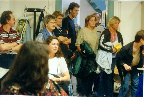 A nice day with slightly too less people. For the peacemovement it is a dilemma how to attract many people for such activities without organizing moneywasting spectacle. The slogan 'Think globaly, Act Localy' is undermined by computer and television that brings the world into your livingroom. It turned out to be the greatest rival for the day. Nevertheless it is a good idea to make this day a traditional happening so a sincere balance between information supply and spectacle can be found. And we hope that the televisionworldcitizens also will find some interest for their fellowcitizens.