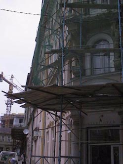 After having bought some appples on the market, the same market were a granate expoded which became the trigger for western militairy action in BiH, we walk to Ferhadija. That is the shoppingstreet in Sarajevo where daily thousents of people stroll up and down, meet each other, to talk and joke together and so on. From the market to Ferhadija is only 200 meters but you can see several reconstructionprojects going on. Last year you could even see streets that were completely covered with constructions for worked and no normal house could be seen because of that. Fehardija is an event. Specially at summertime everybody is coming there to walk and to show oneself. A friend of ours lives on Ferhadija and at 12 in the night is still could be extremely noisy because of all the people having a good time together.