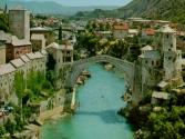 Lately, Mostar has been present in the local media with various themes but the same context. Bosnian Berlin - yes or no. Bosnian Berlin - is there a future. A few Mostar clips: Radio FREE EUROPE organized a radio line which involved Safet Orucevic and Neven Tomic, the mayor and deputy mayor of Mostar, with moderator Omer Karabeg. If we are to judge from the conversation, according to Orucevic, recently distant from SDA politics, and Tomic, the most liberal of all HDZ candidates, "Mostar has a chance to become Berlin. After the fall of the wall..." Unlike Berline, there is still a wall which is a frequent guest in this Neretva city. A unique bus line began to work in Mostar. The city, artificially divided to Eastern and Western part, is being brought together with buses that are going through the WHOLE city. I know this may sound strange to someone, even absurd - one, unique bus line, but in Mostar case it seems to be one way of dealing with the absurd. Simbolicly (and true), a bus drive around thwe city is for free. No tickets - freedom of movement guaranteed and available to everyone. There is a ten-day long MOSTAR INTERCULTURAL FESTIVAL 2000 - Herzegovian alternative meetings taking place in Mostar. And then the same thing, but in cyrillic. The festival with a programme containing concerts, exibits, video projections, street performances, sound installations... >From 27.06. to 08.07., written in Cyrillic and Latin, in "Bosnian" Berlin, with participants from BiH, FR Yugoslavia, Croatia, Spain and France. And with information on mostar-interkultural-festivalagmx.net